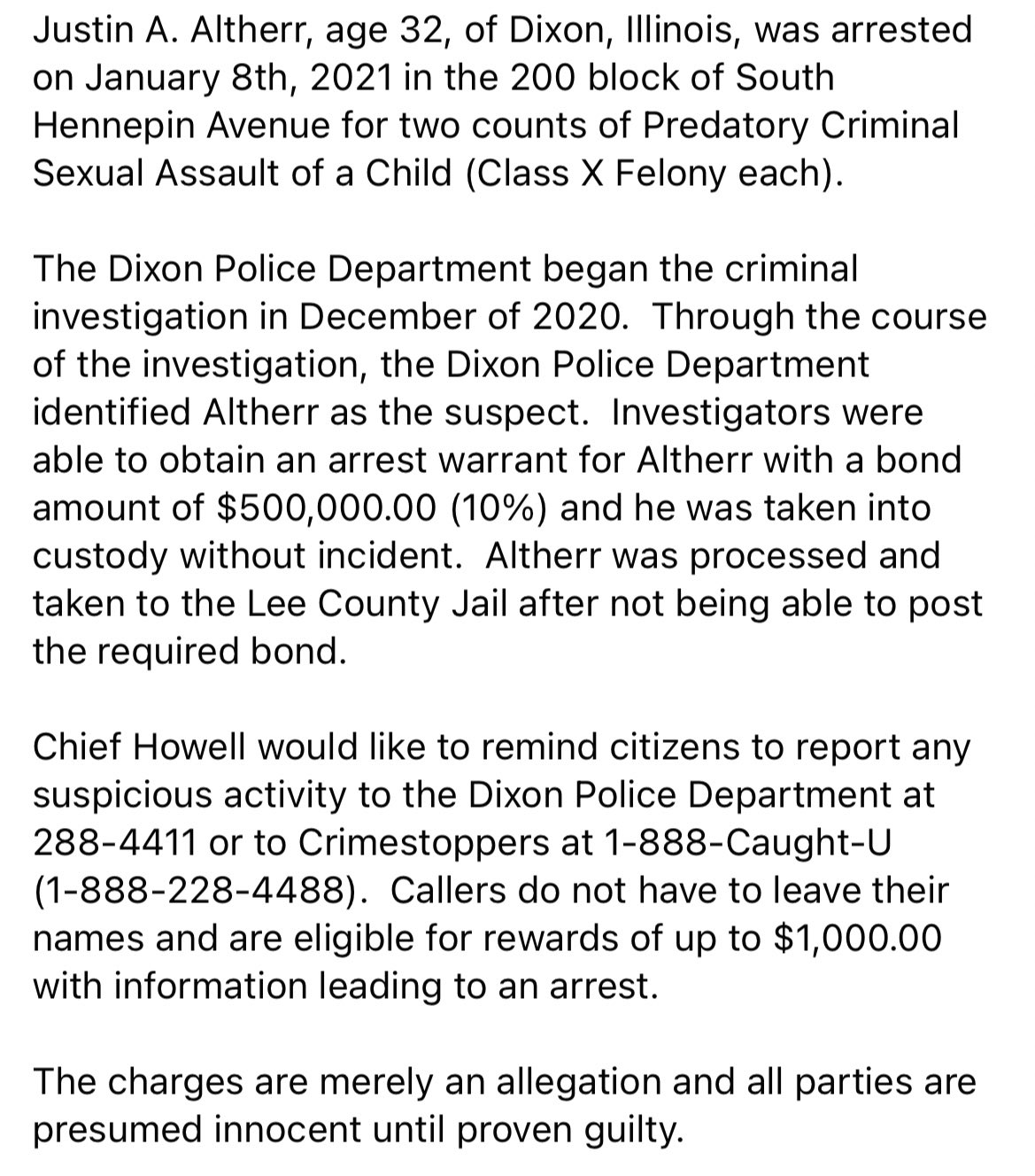Dixon Police On Twitter Predatory Criminal Sexual Assault Of A Child Arrest Press Release Https T Co Lr6hqbvudu Twitter
